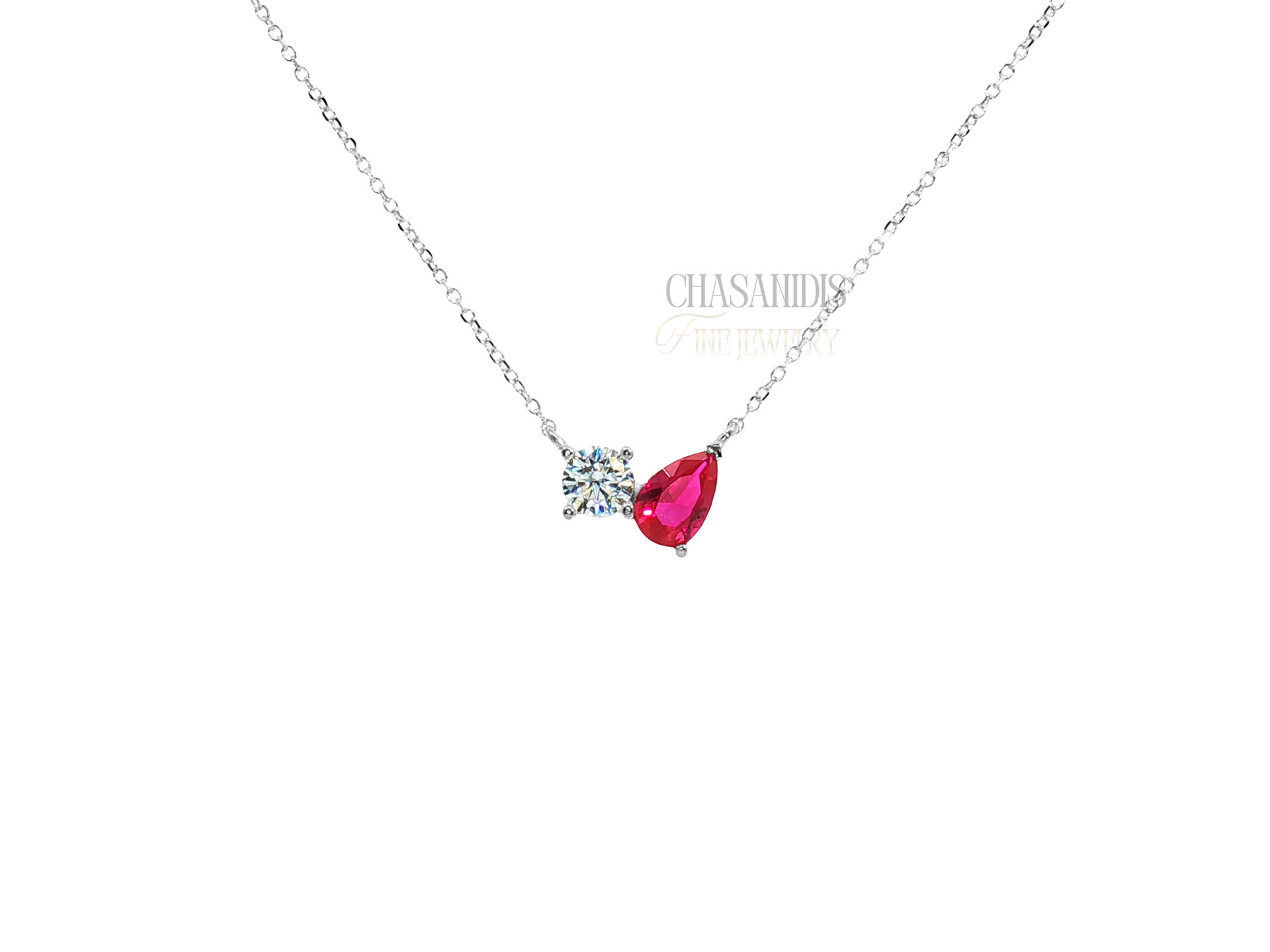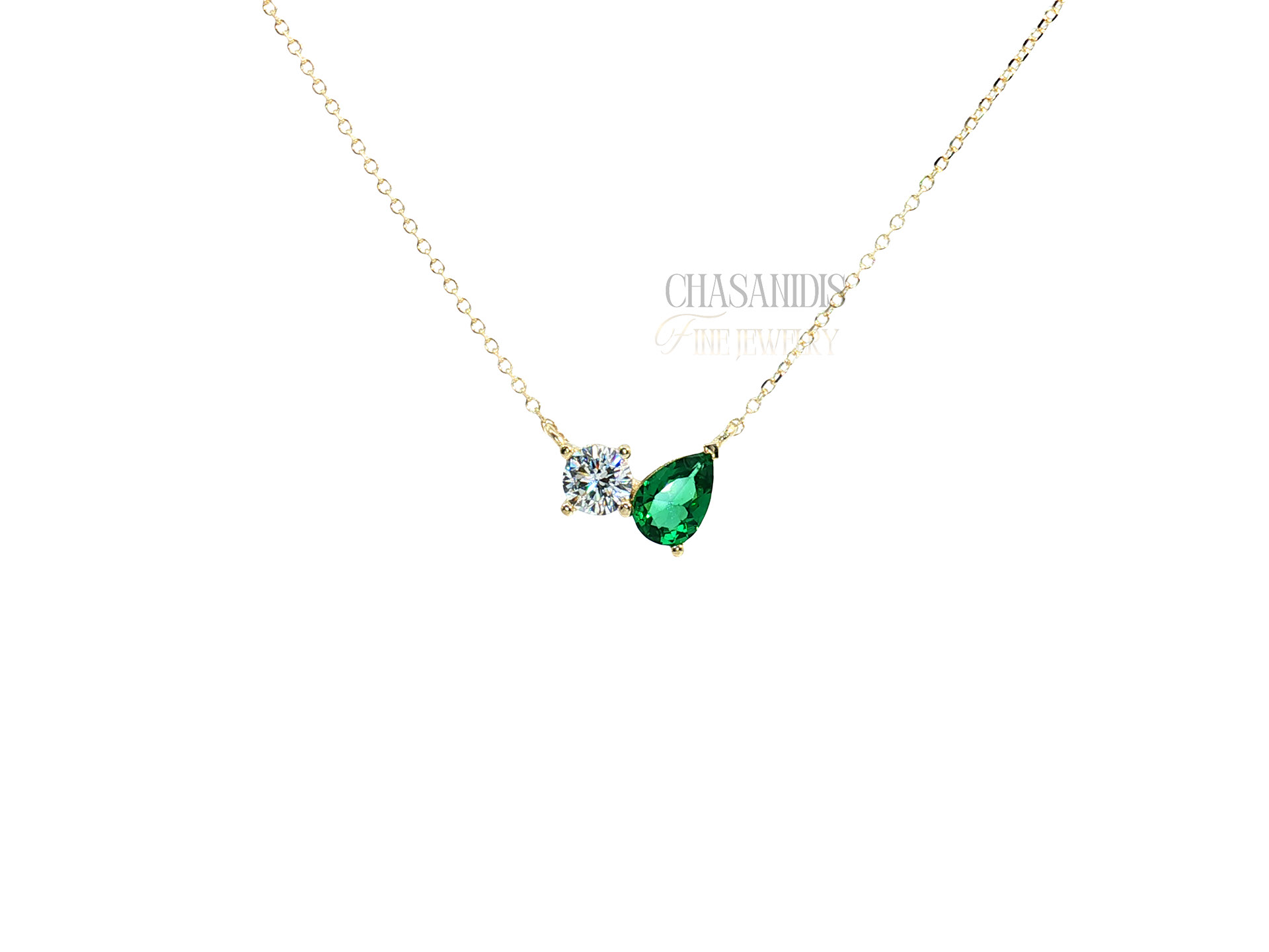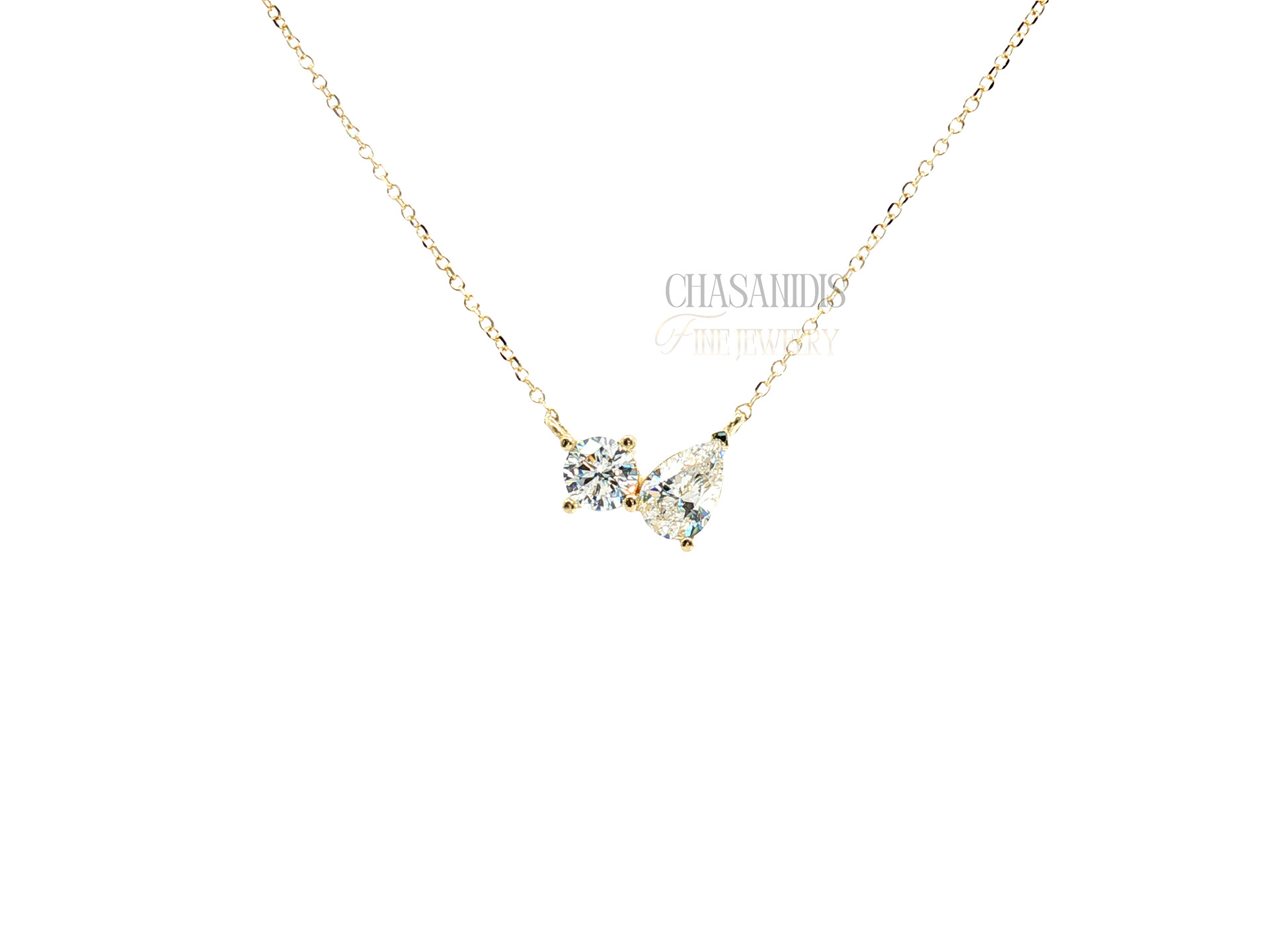 Χρυσό Κολιέ με Πουάρ και Μονόπετρο