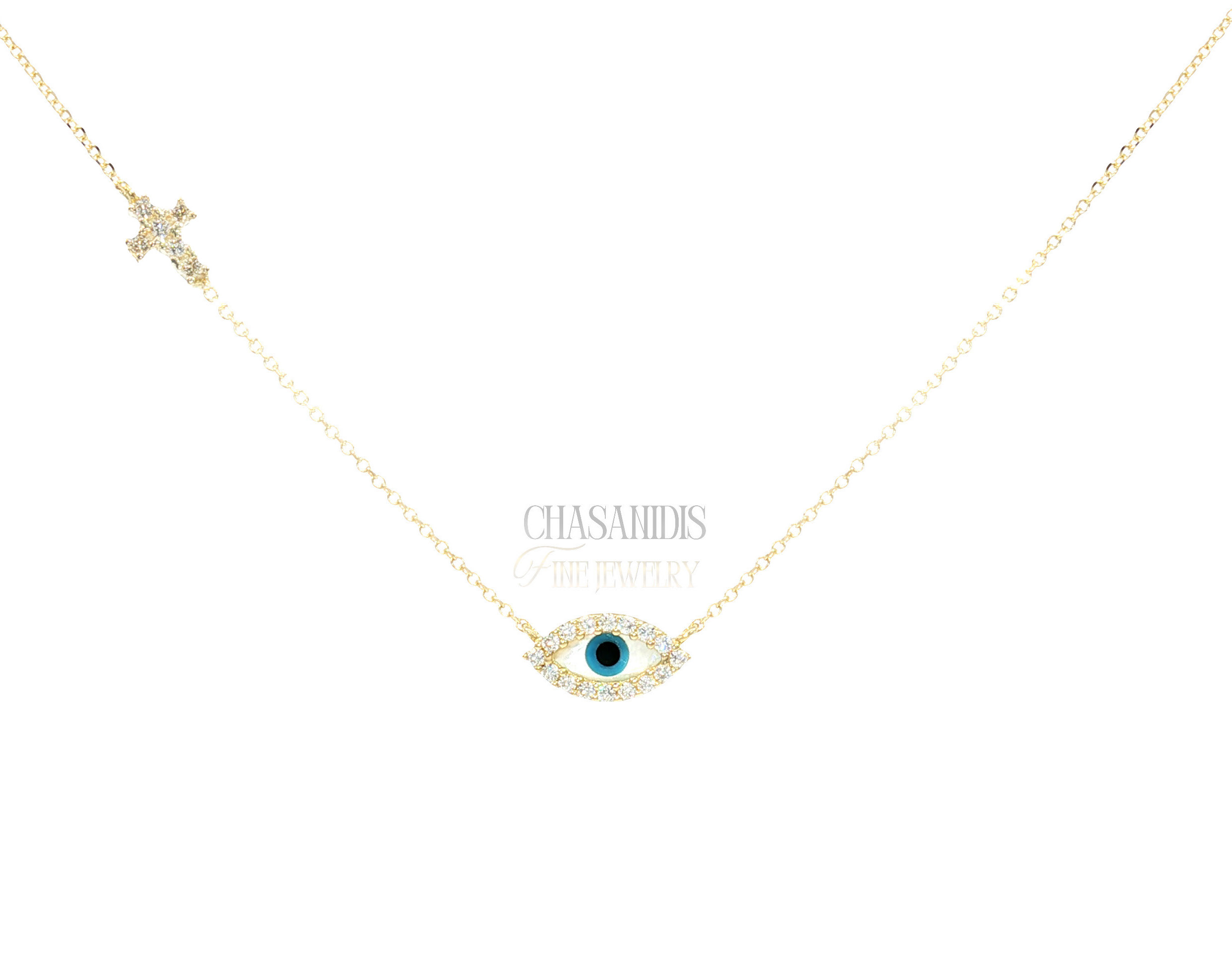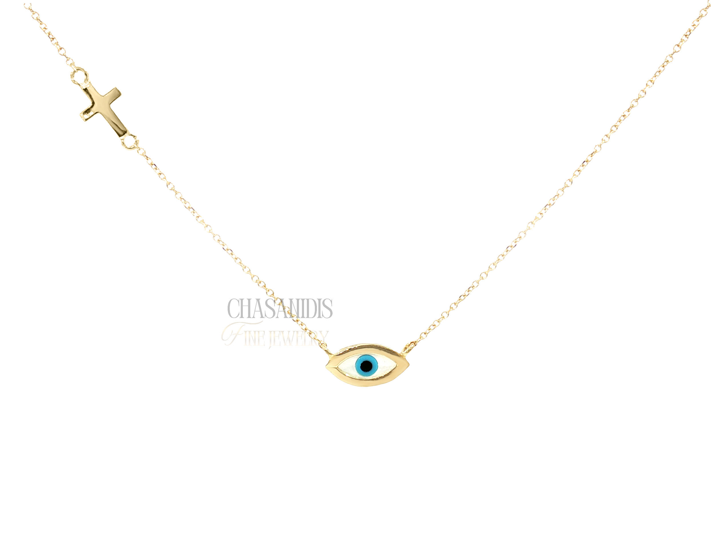 Χρυσό Κολιέ Ματάκι Φίλντισι Λουστρέ με Σταυρό
