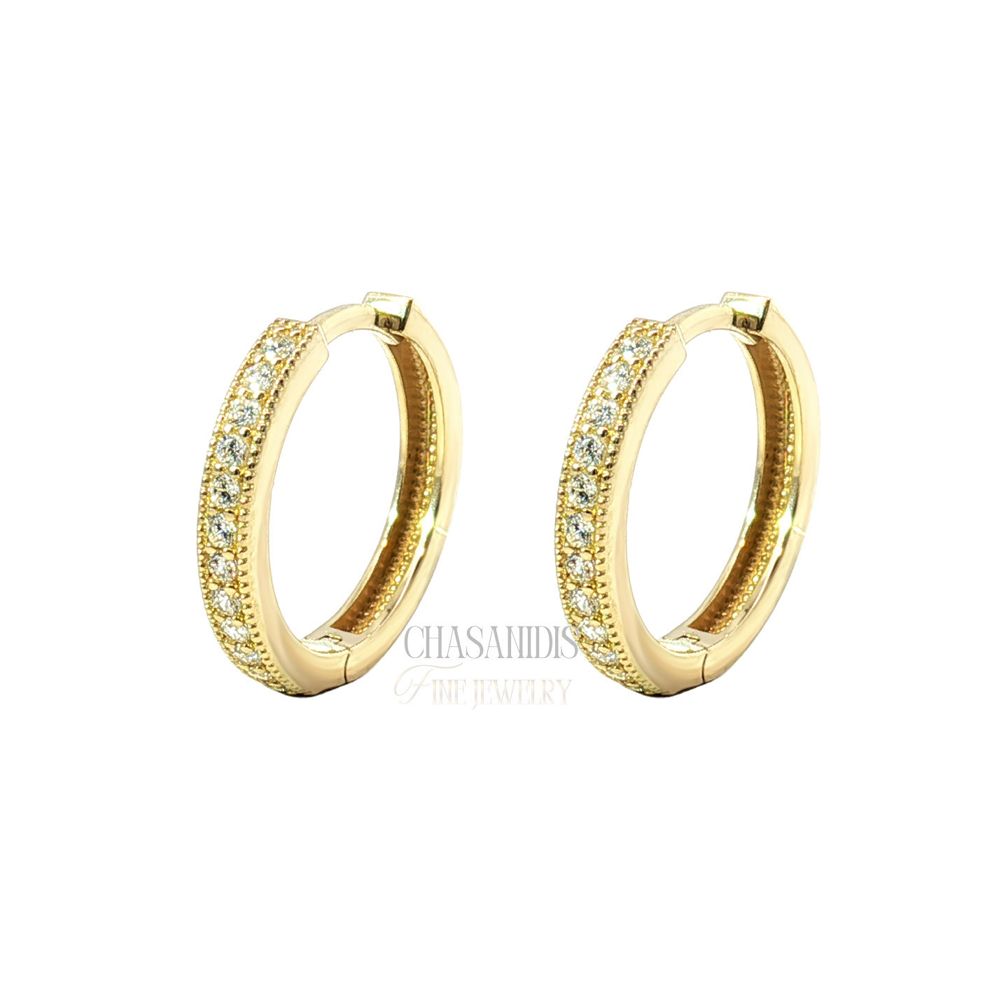 Χρυσά Σκουλαρίκια Κρίκοι με Διπλή Σειρά Πετρών