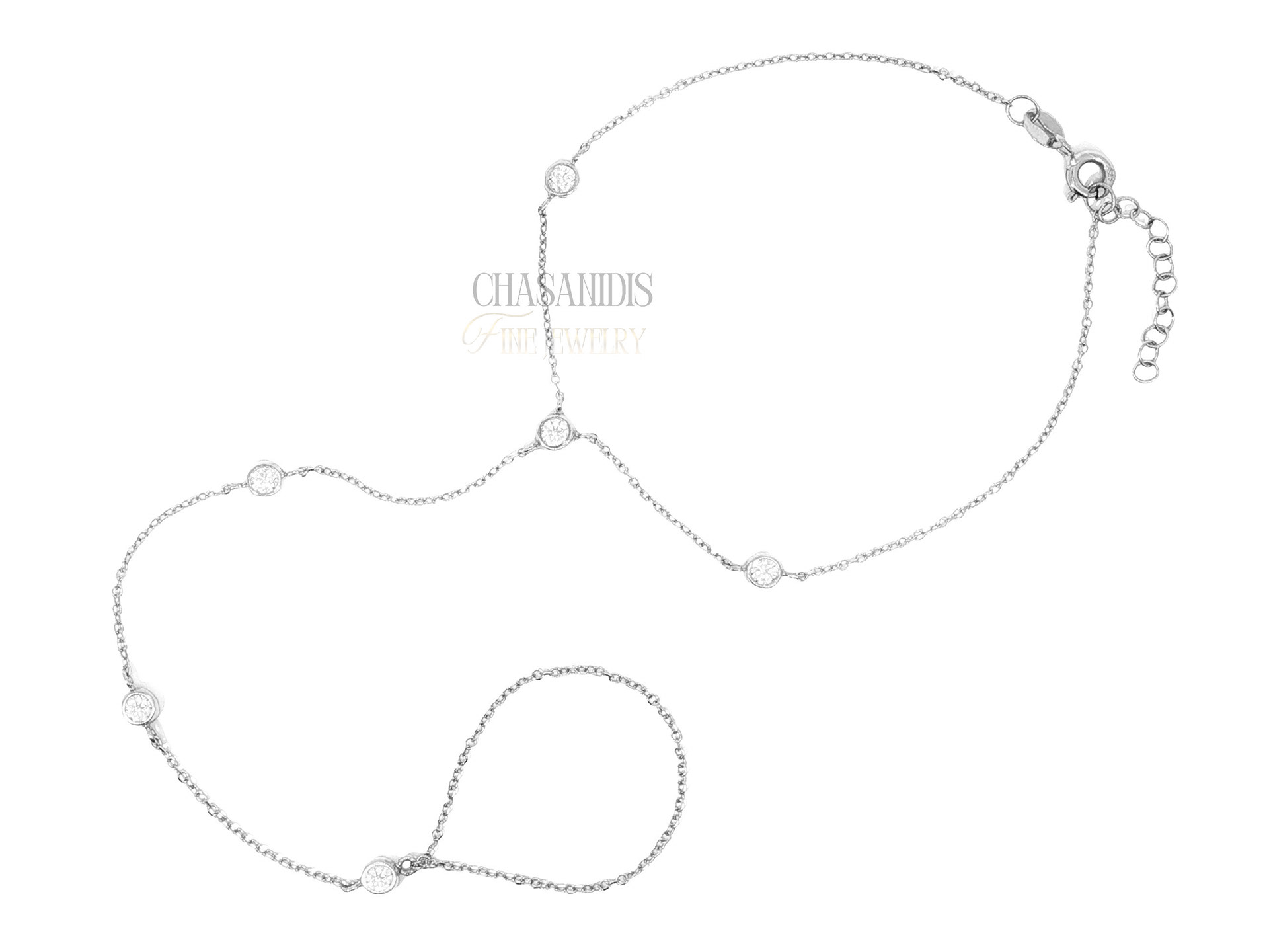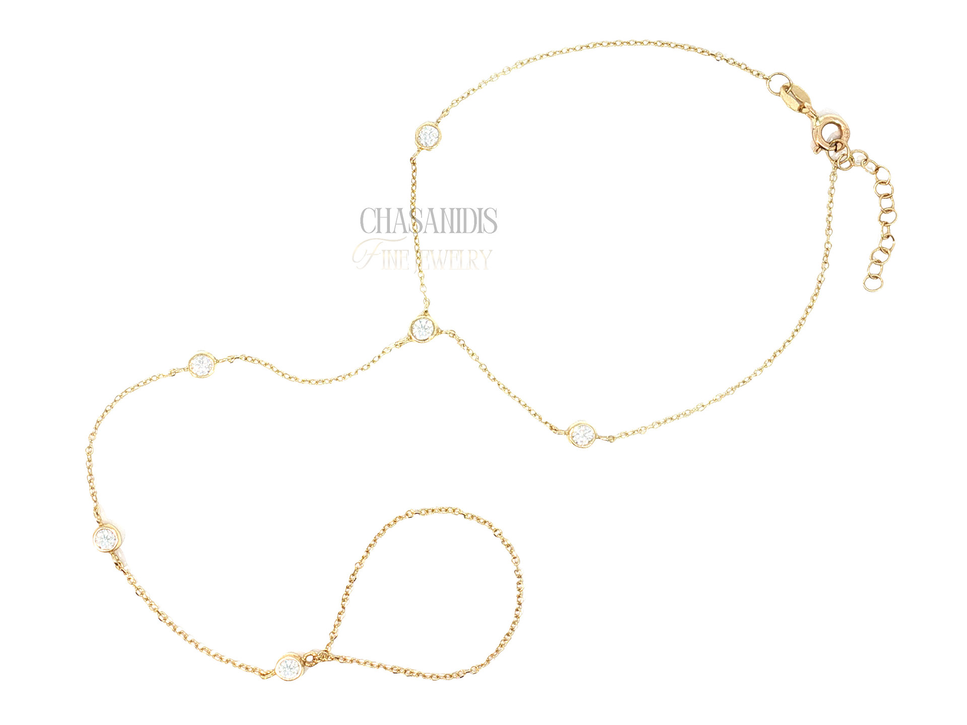 Χρυσό Βραχιόλι-Δαχτυλίδι Αλυσίδα με Μονόπετρα
