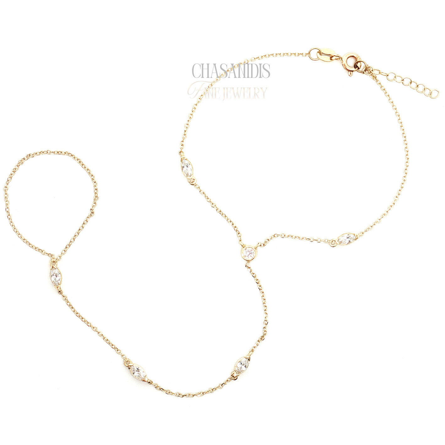 Χρυσό Βραχιόλι-Δαχτυλίδι Αλυσίδα με Ναβέτες