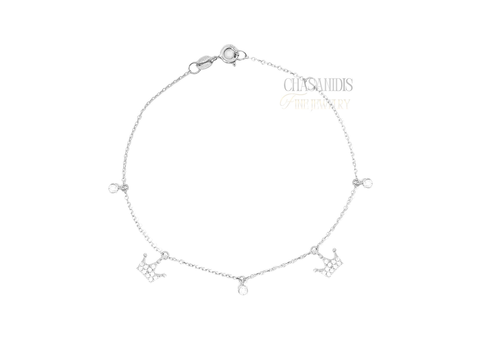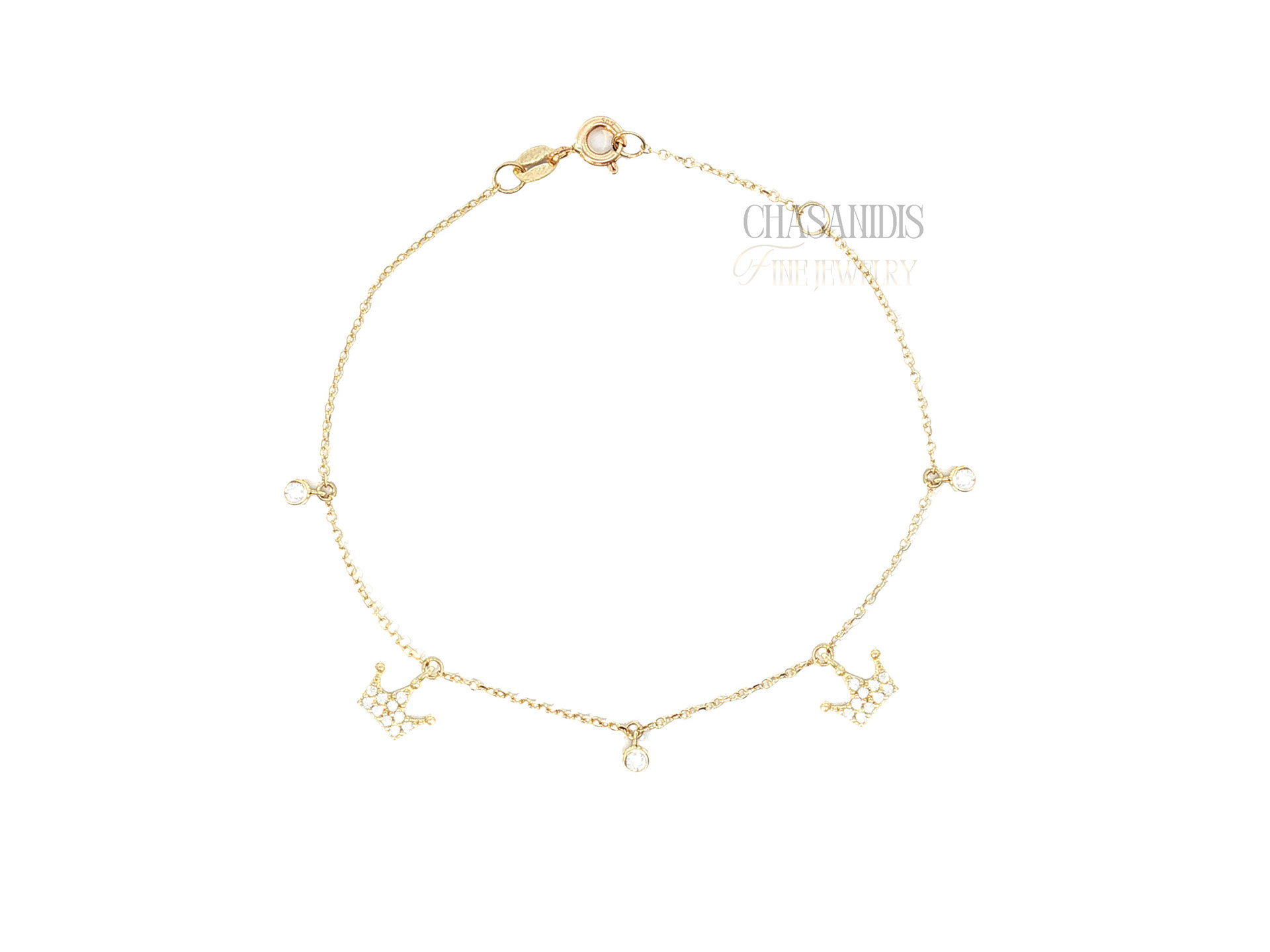 Χρυσό Βραχιόλι με Κορώνες και Μονόπετρα