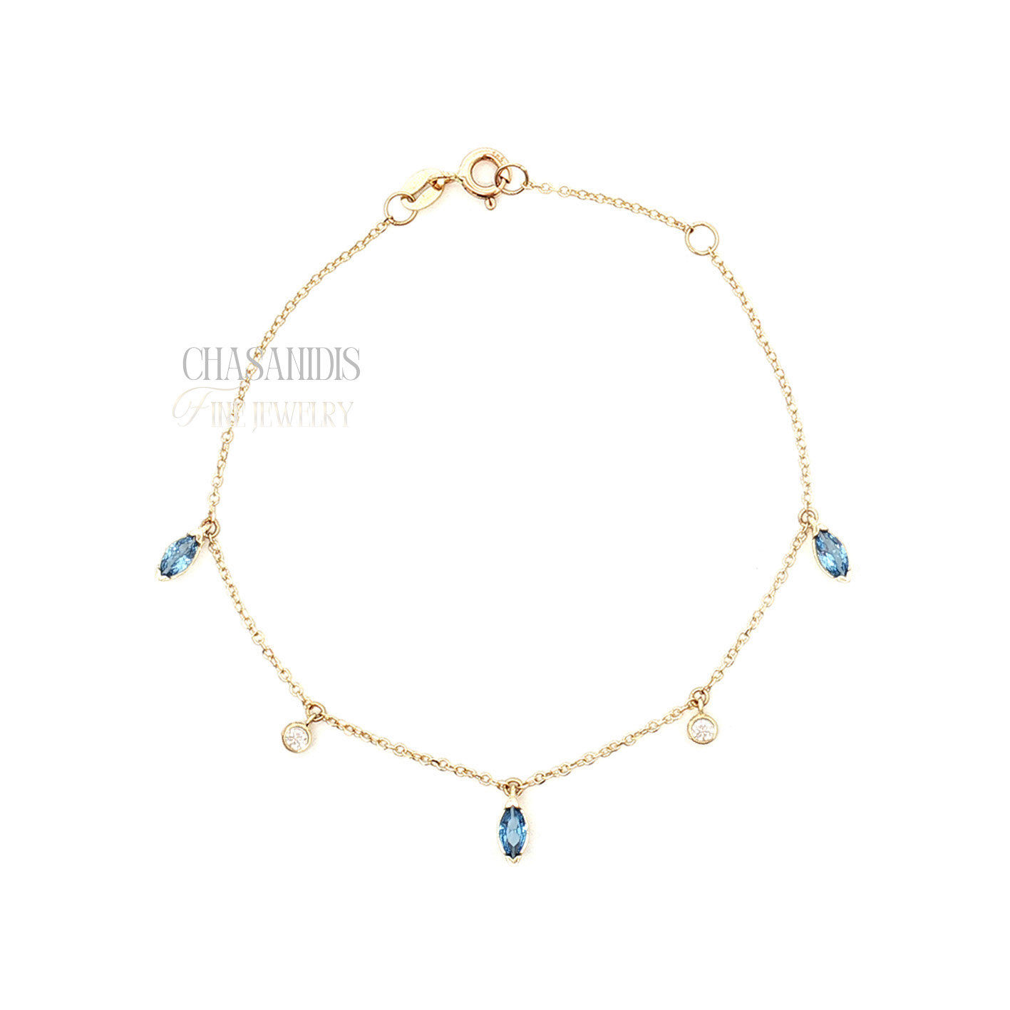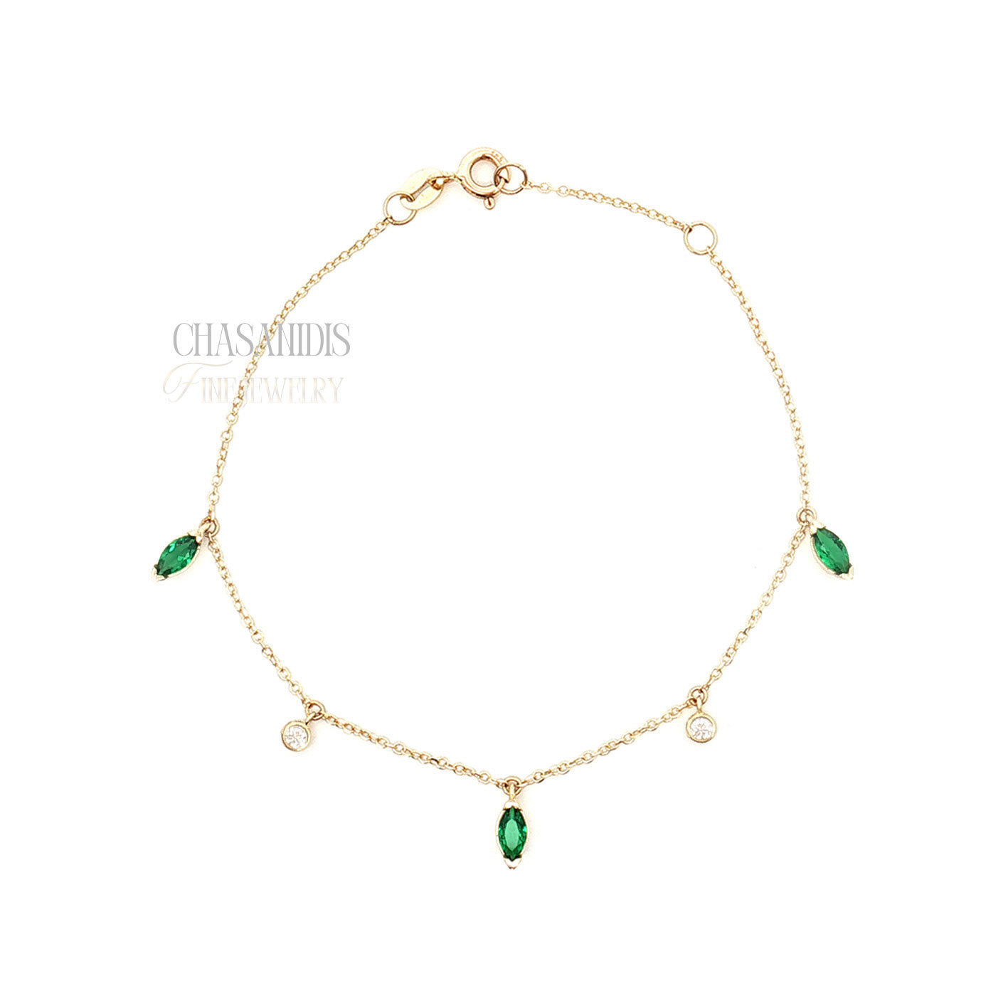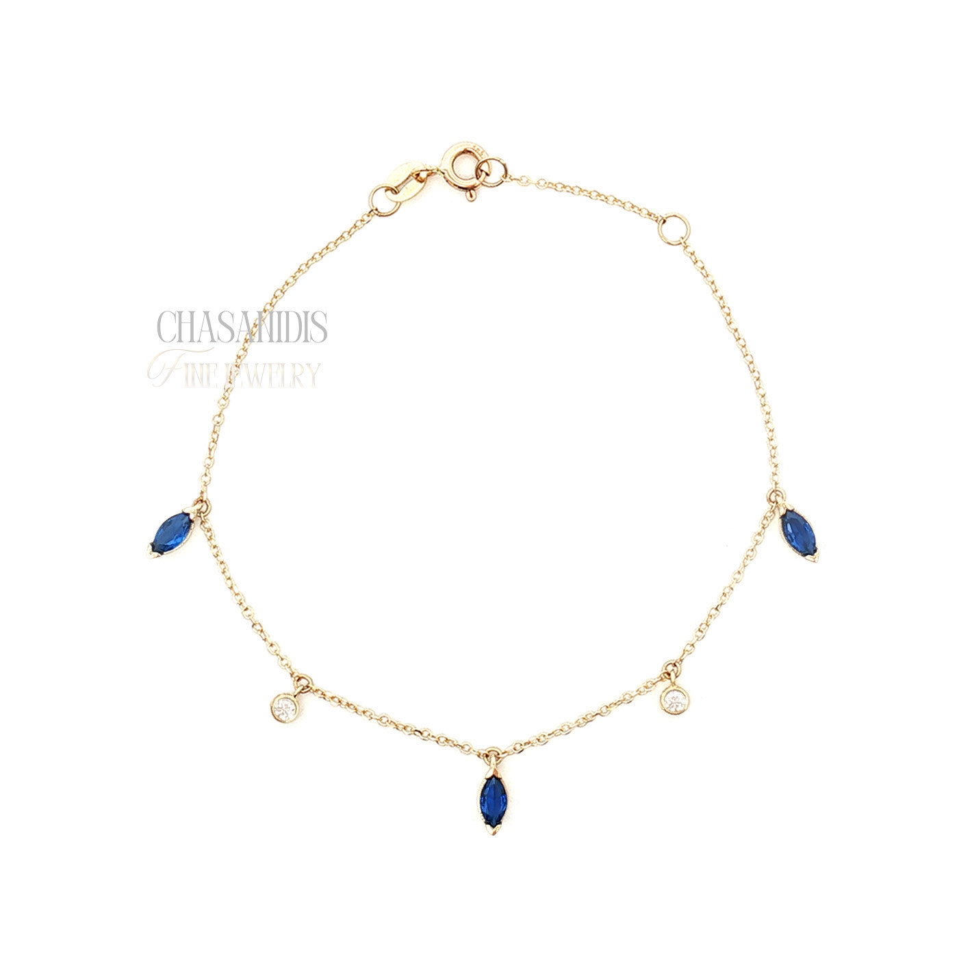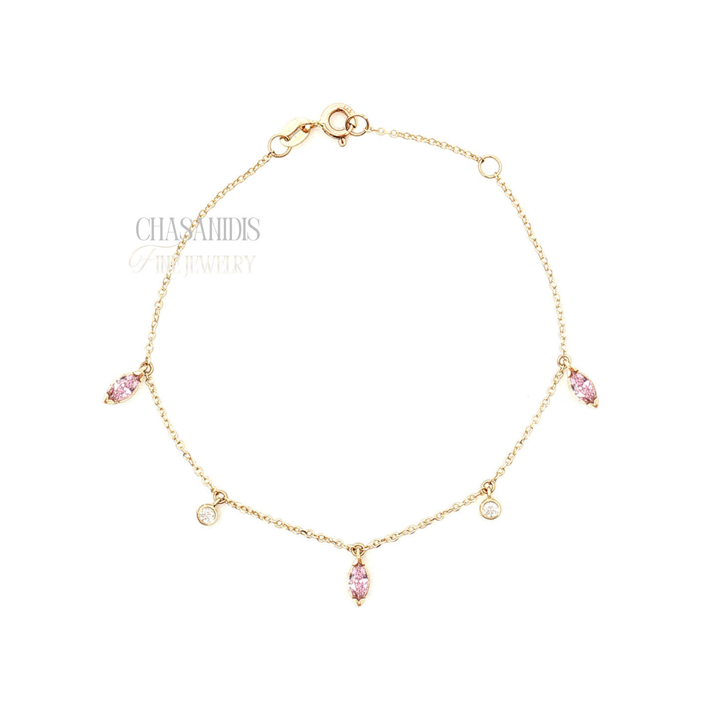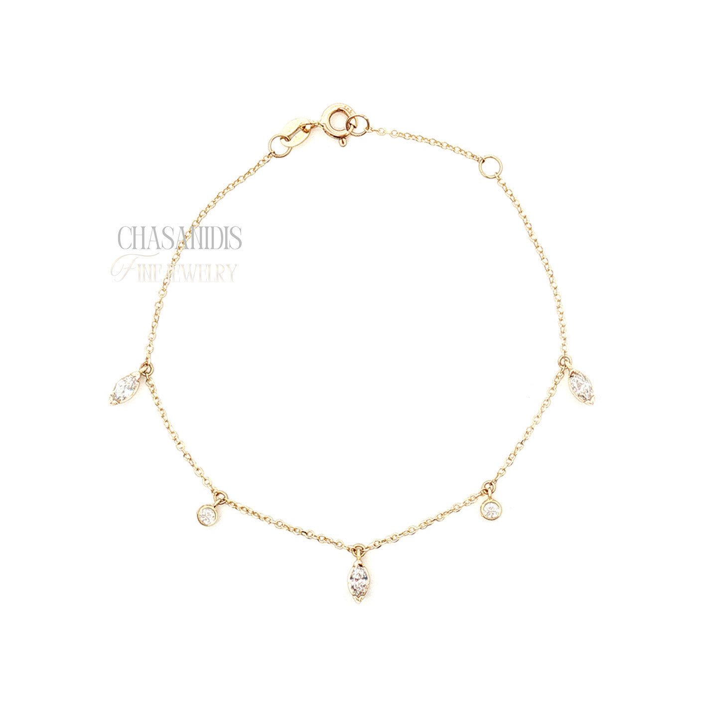 Χρυσό Βραχιόλι με Πουάρ και Μονόπετρα