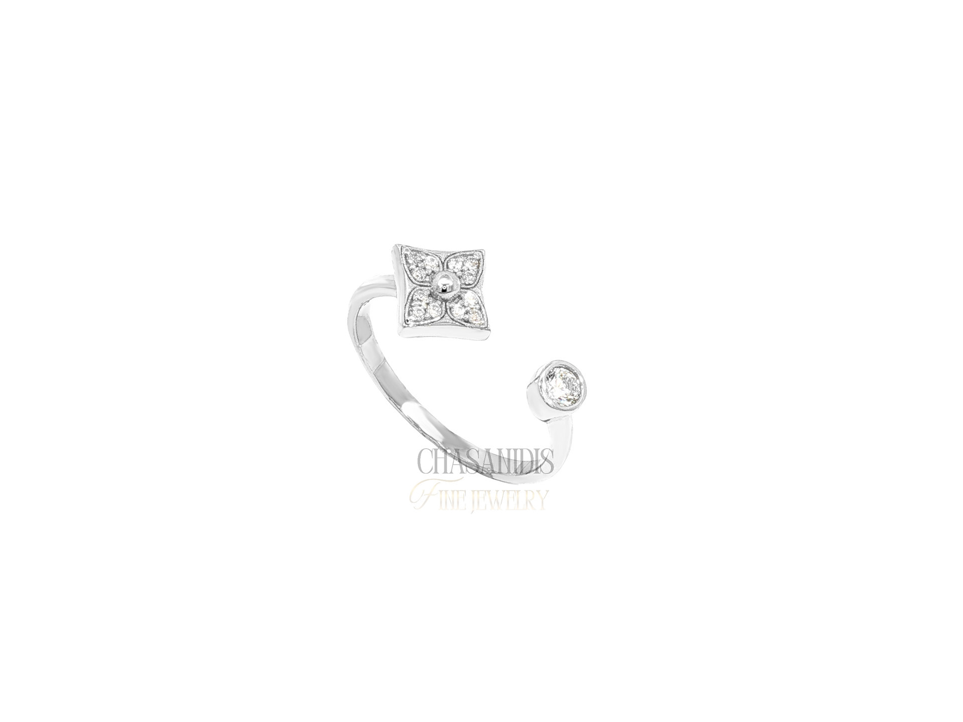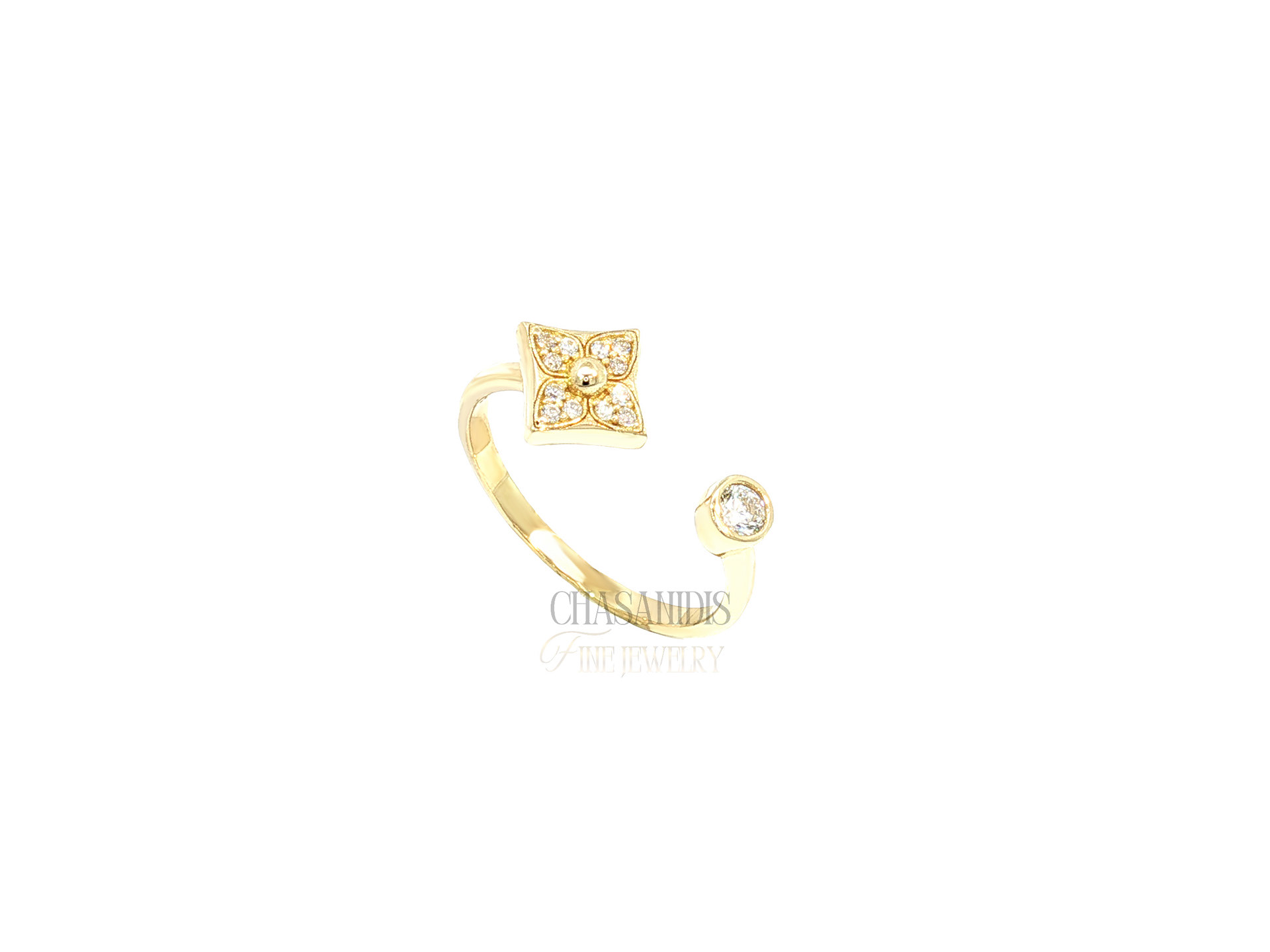 Χρυσό Δαχτυλίδι Ανοιχτό με Ρόμβο και Μονόπετρο