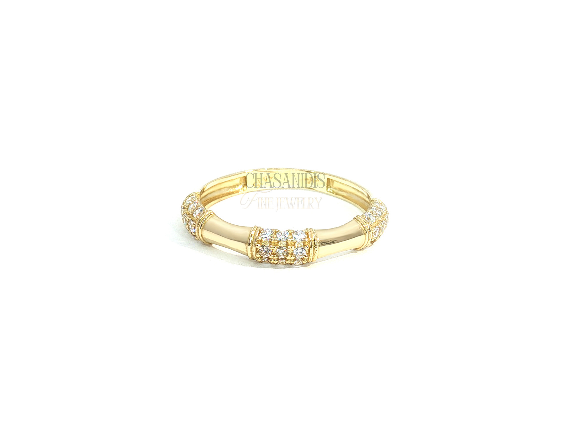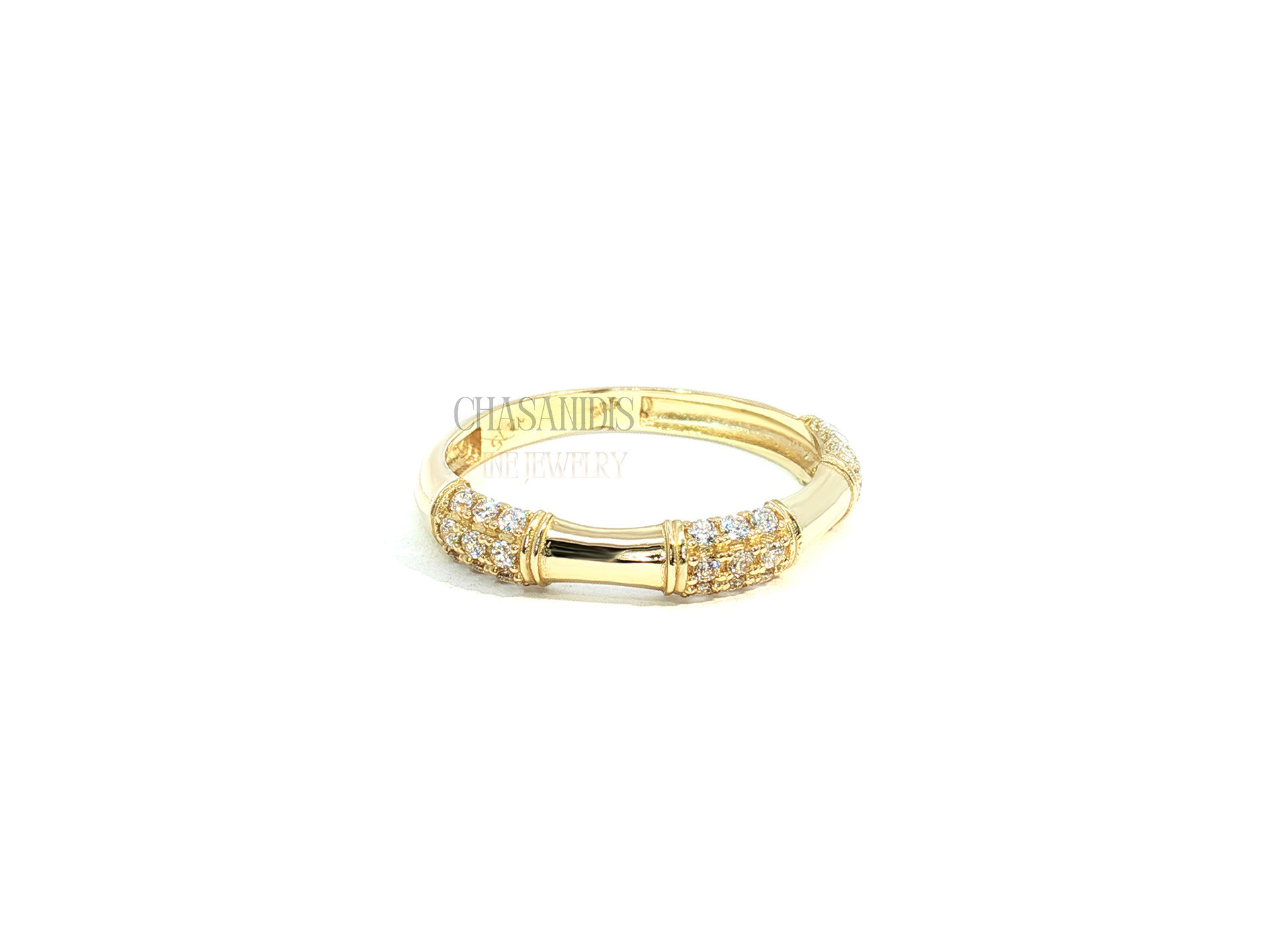 Χρυσό Δαχτυλίδι Μπαμπού με Πέτρες
