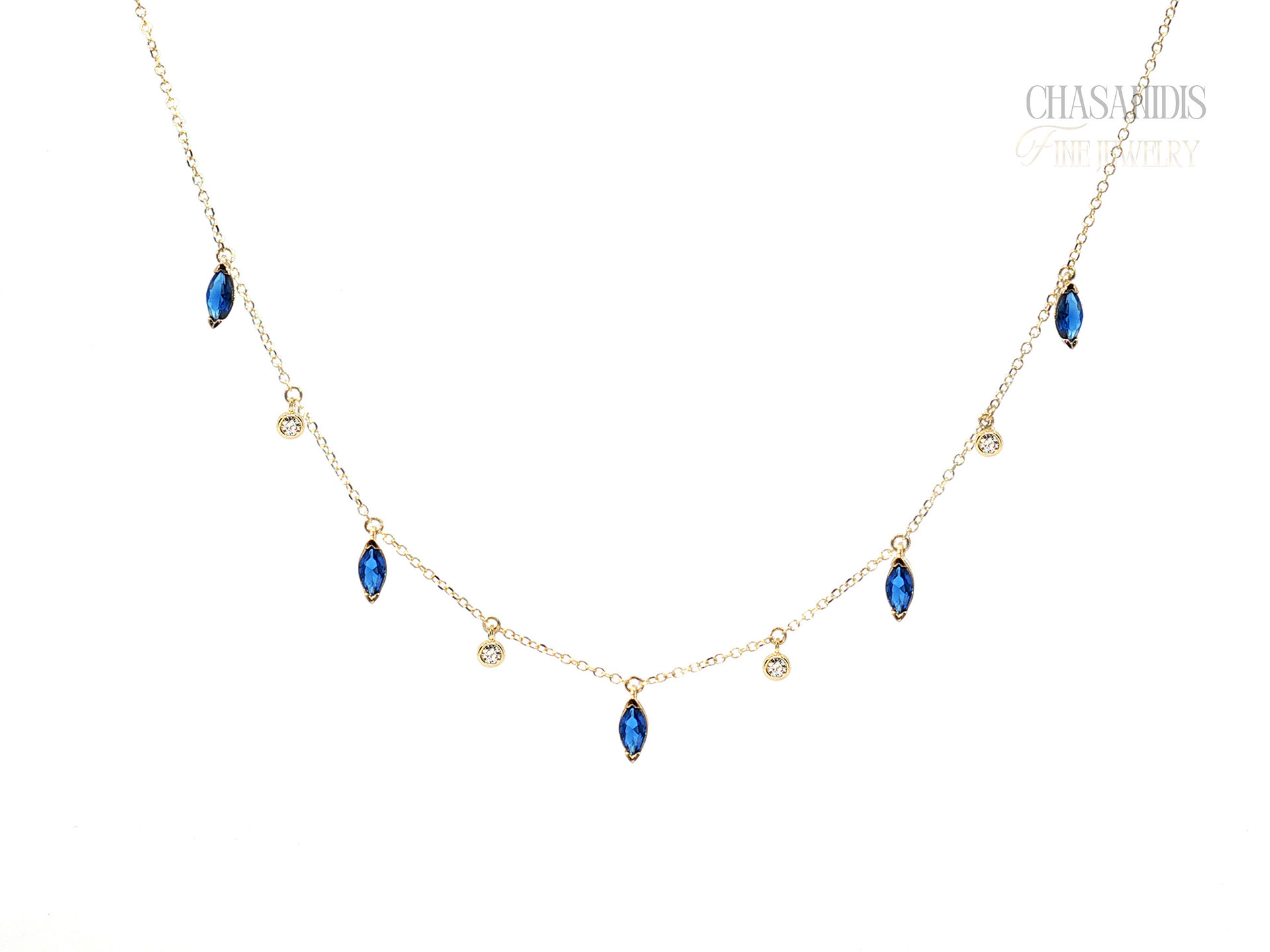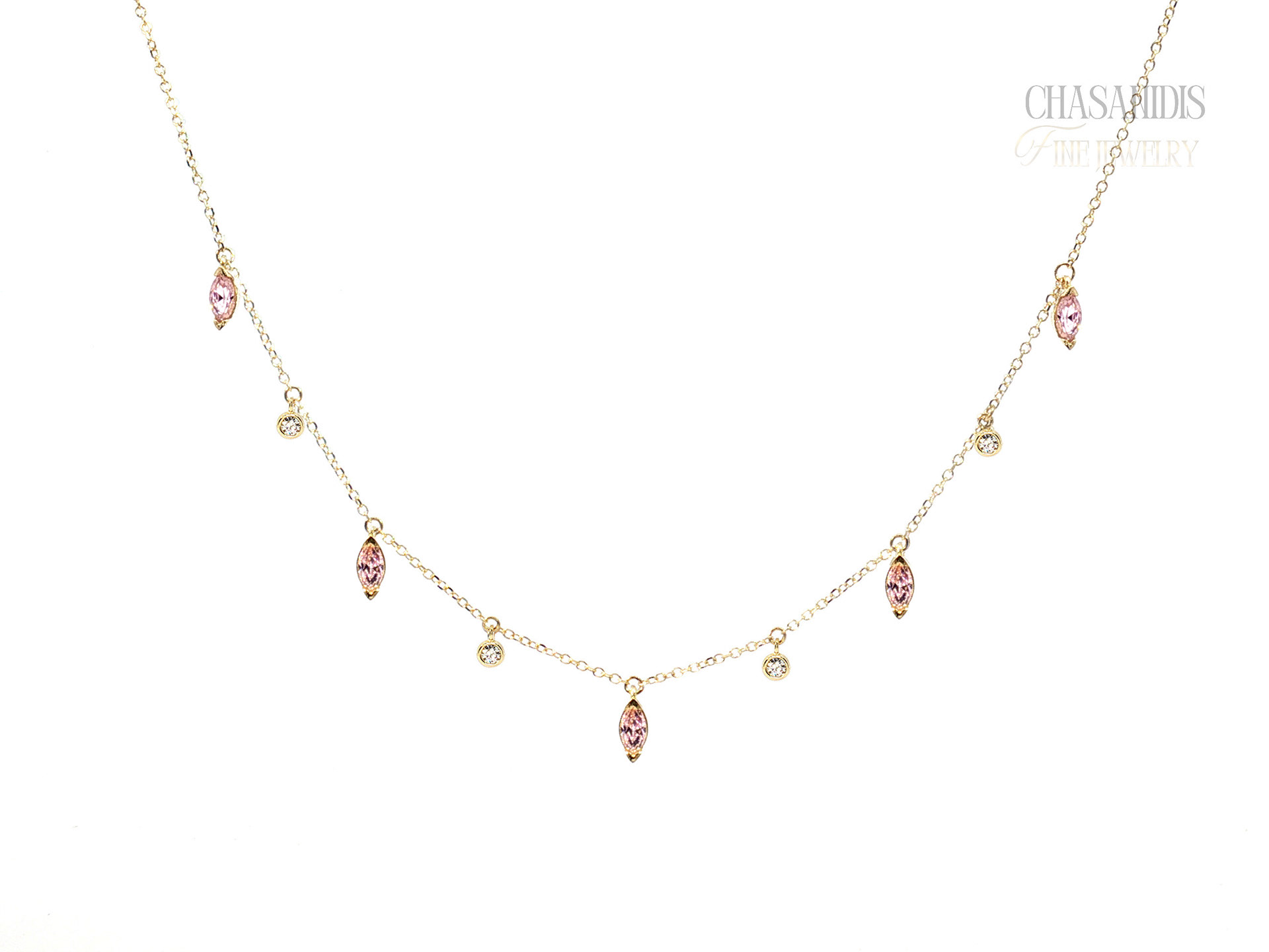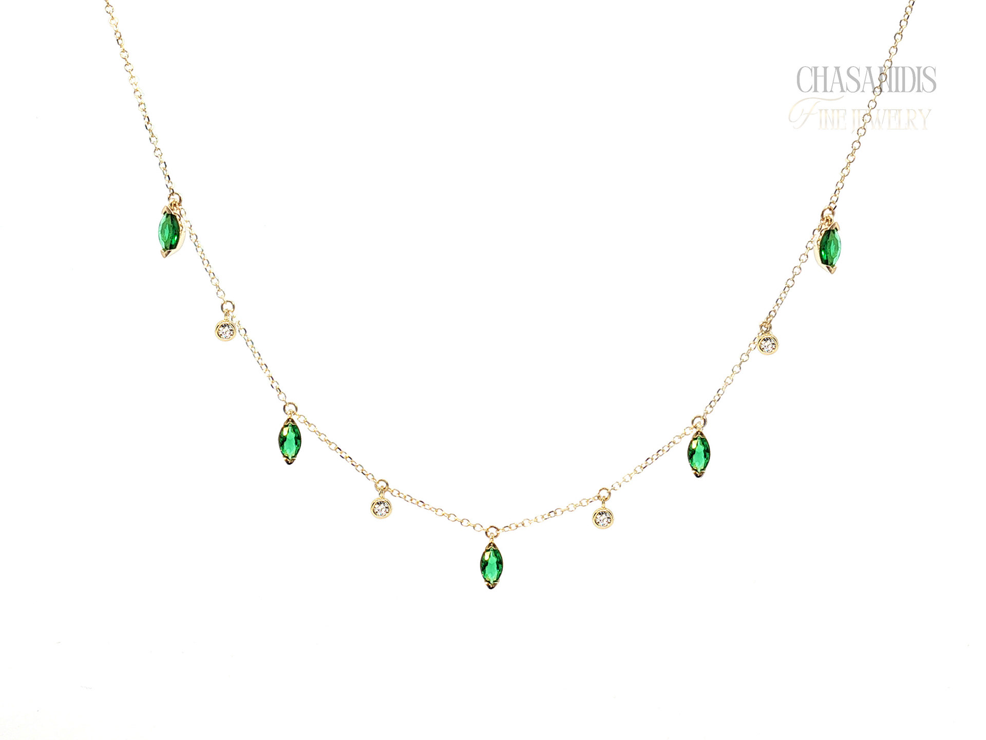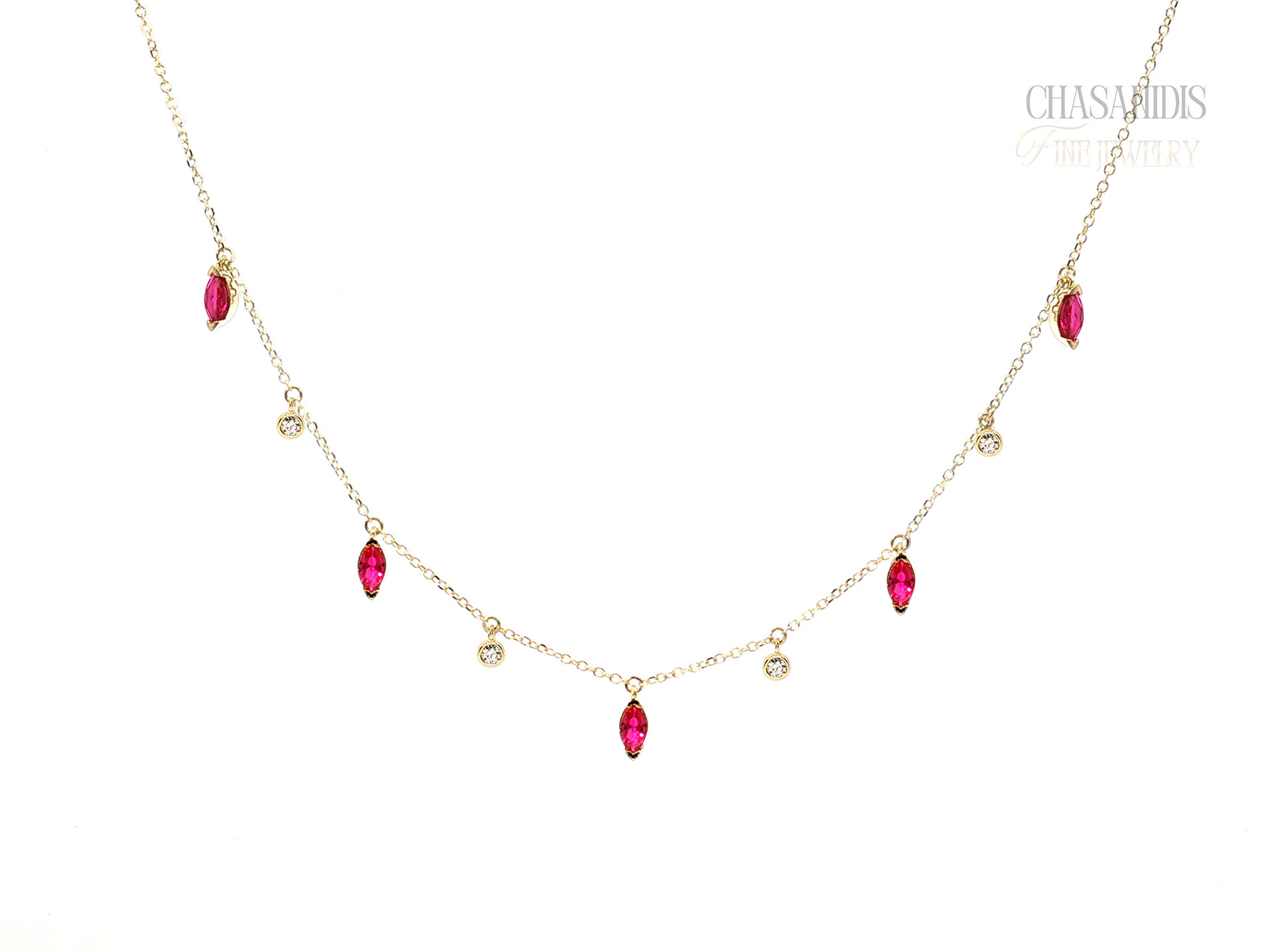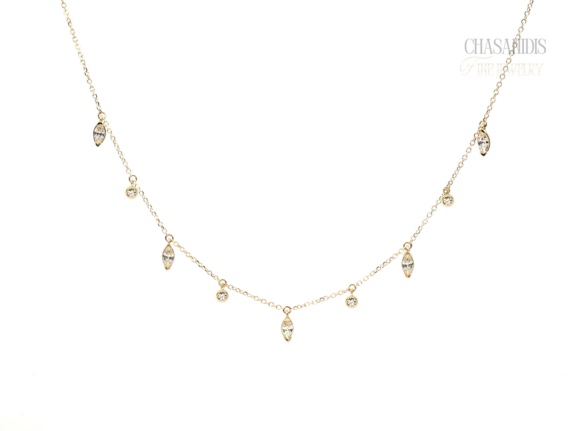 Χρυσό Κολιέ με Ναβέτες και Μονόπετρα