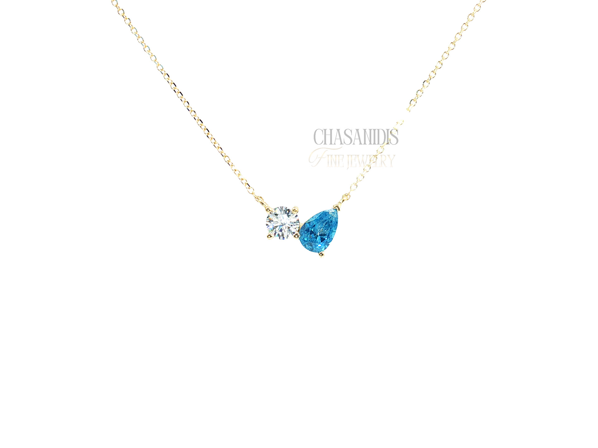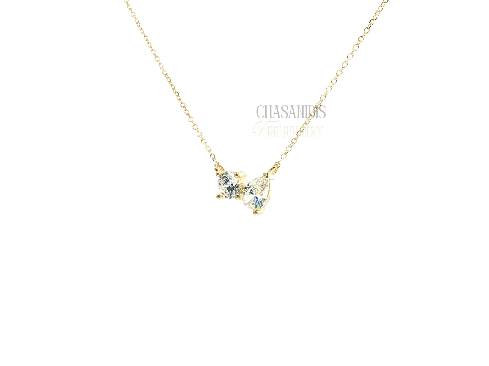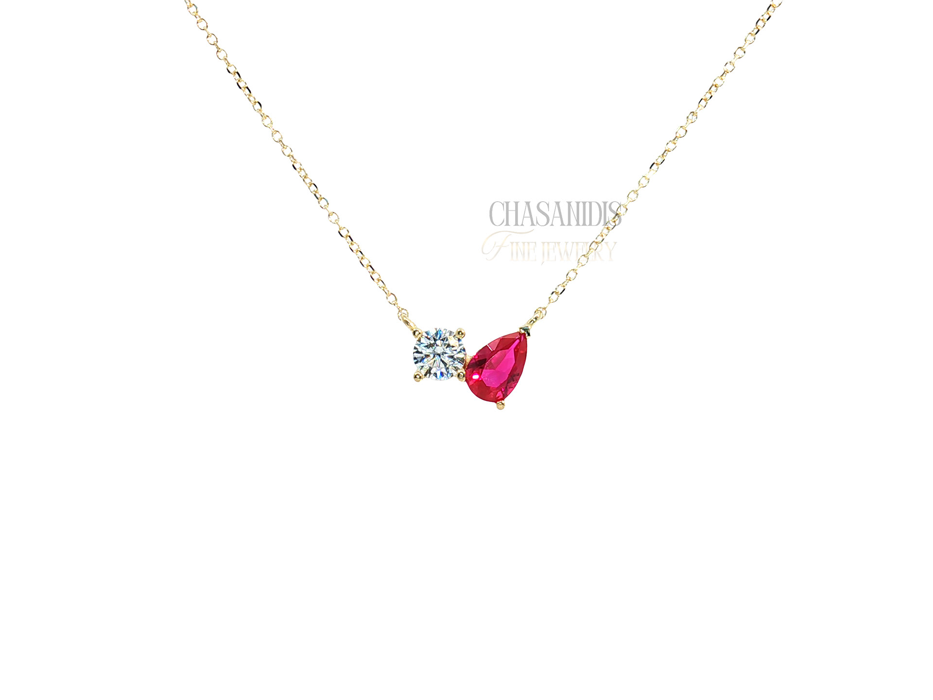 Χρυσό Κολιέ με Πουάρ και Μονόπετρο