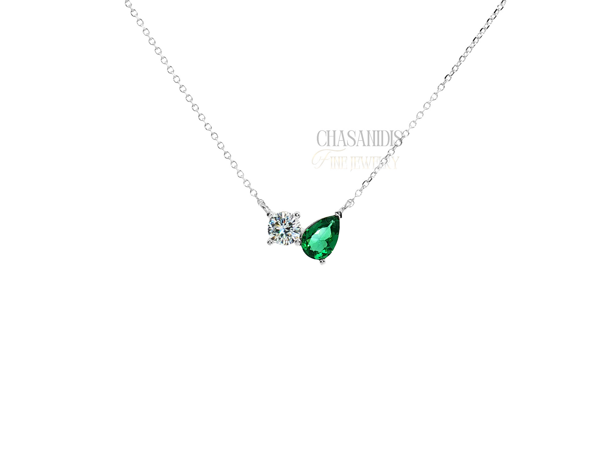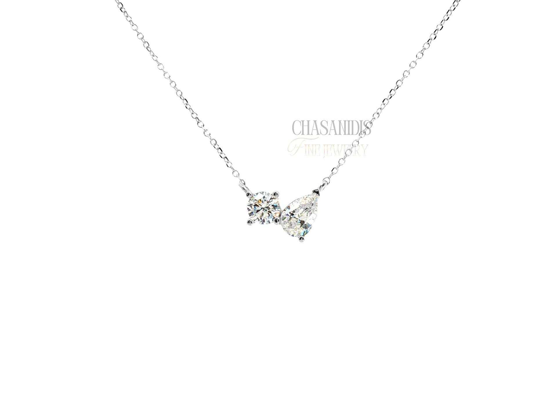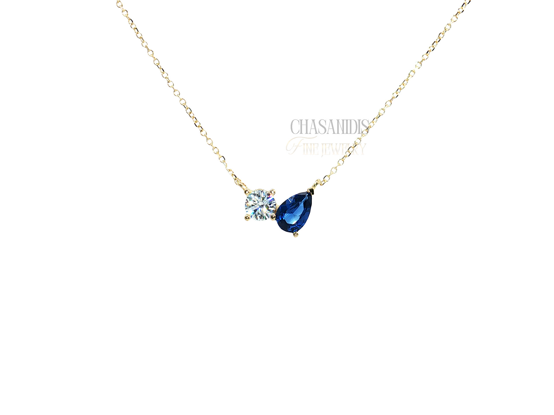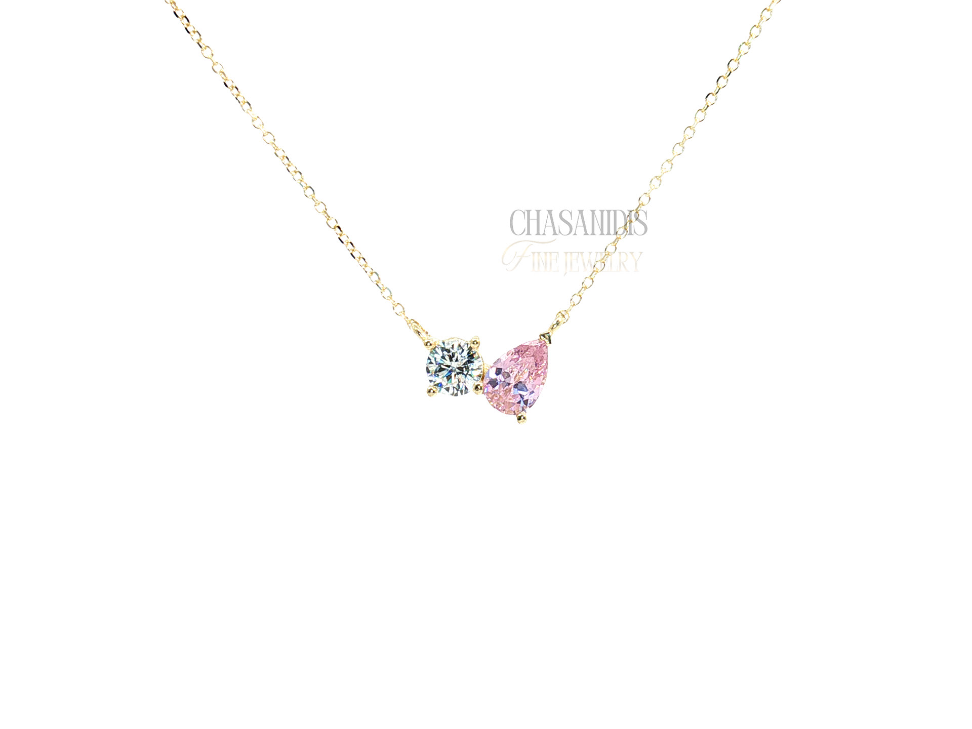 Χρυσό Κολιέ με Πουάρ και Μονόπετρο