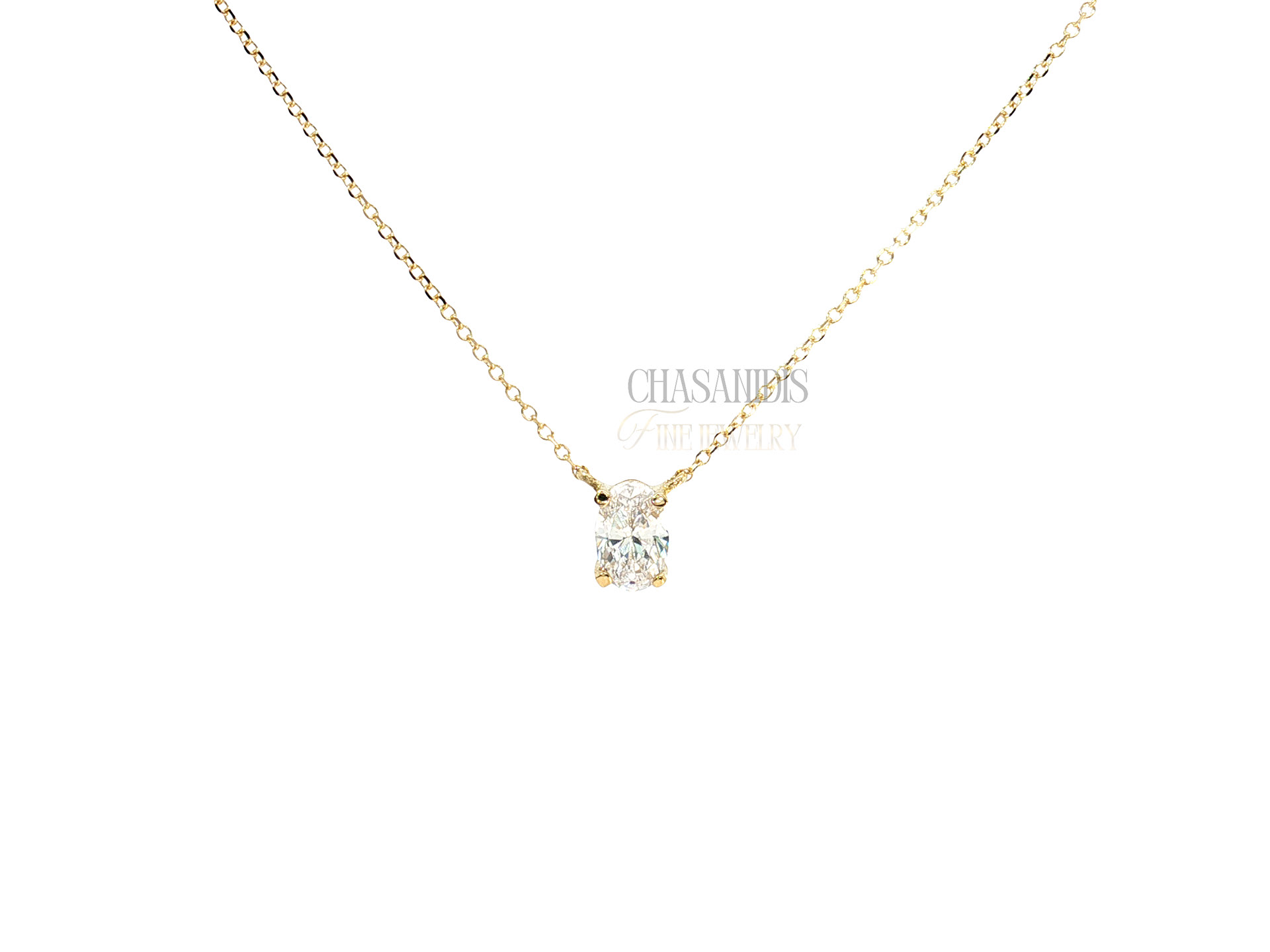 Χρυσό Κολιέ Μονόπετρο Οβάλ 4x6 mm