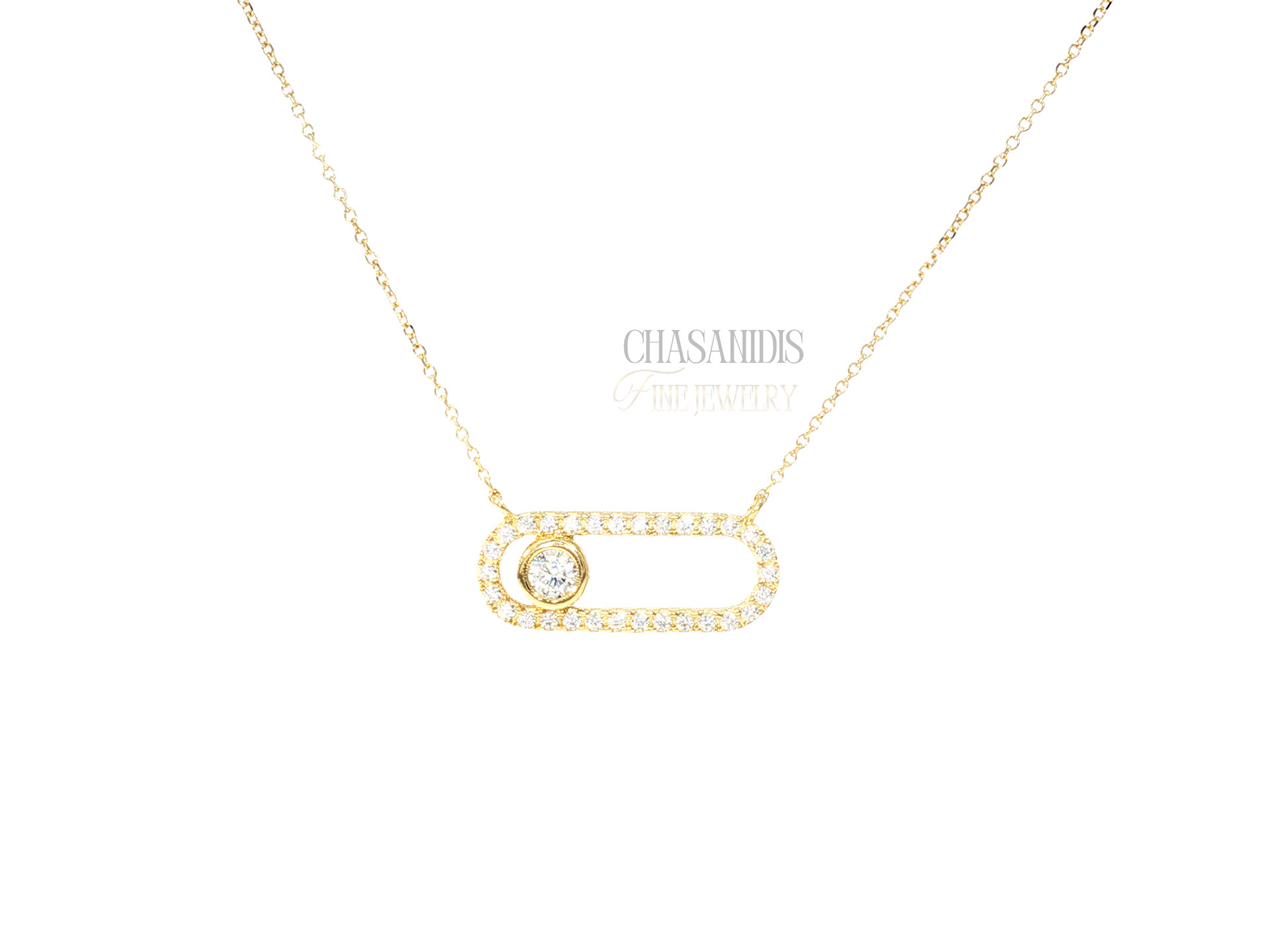 Χρυσό Κολιέ Οβάλ Πλαίσιο με Μονόπετρο
