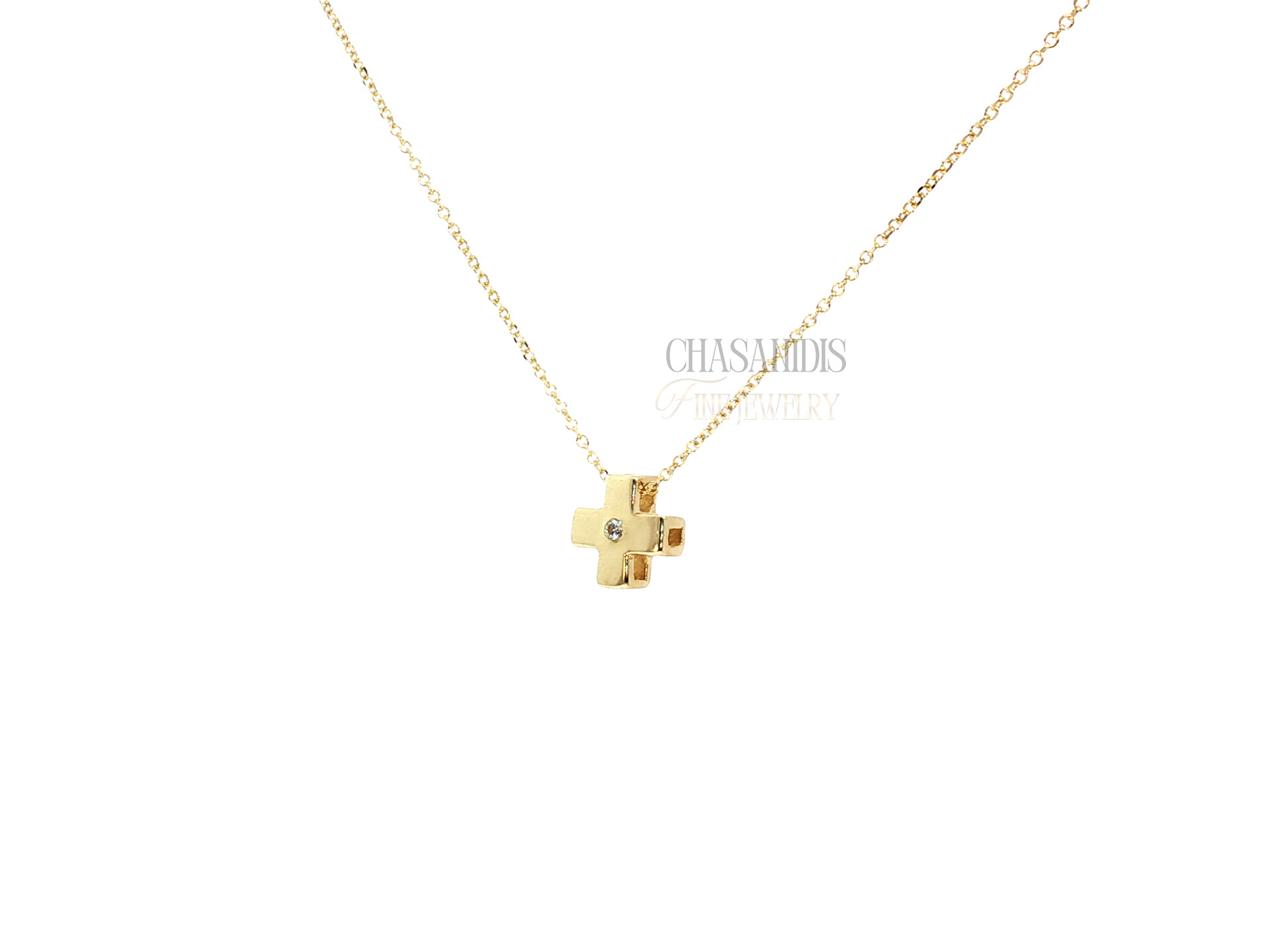 Χρυσό Κολιέ Σταυρός Τετράγωνος με Πέτρα στο Κέντρο no. 1